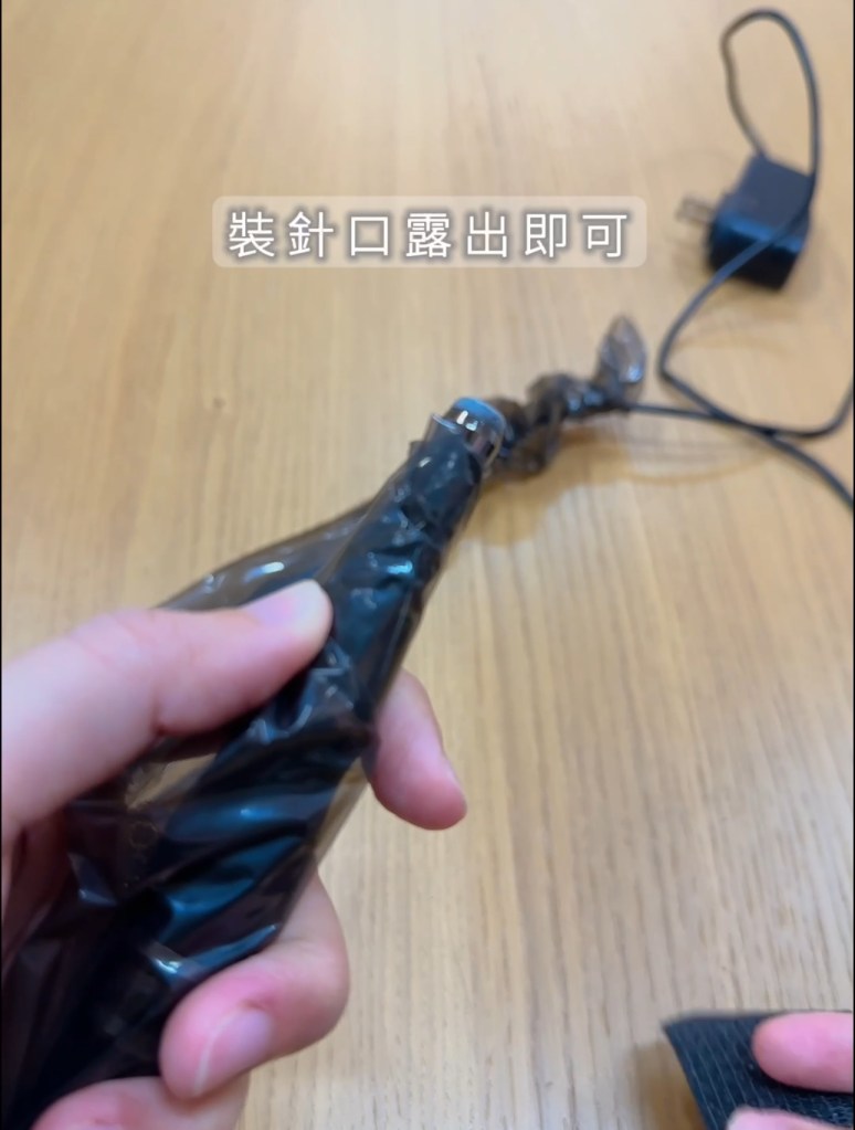 我通常會在客人敷舒緩膏時的空擋開始準備。線套長約80cm,會完整包覆住機器筆身、開關位置,因為過程中會反覆的擦拭紋繡部位、電線也多少會碰到客人、機器也開開關關的