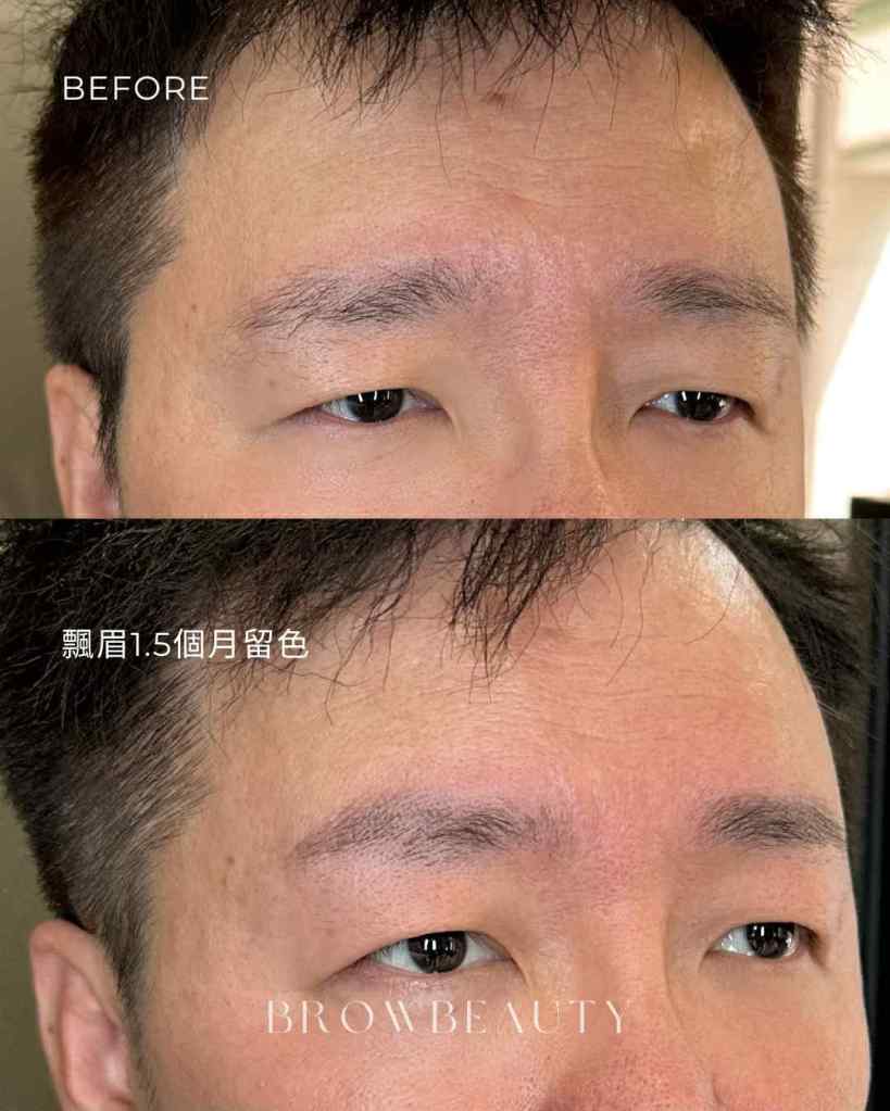 雖然眉毛整體毛量偏稀疏、眉型不完整,但原生毛流分布尚可、非屬疤痕型缺毛,因此採用飄眉方式,沿著原有毛流方向進行全眉設計,補足空缺並重建整體眉型結構。
